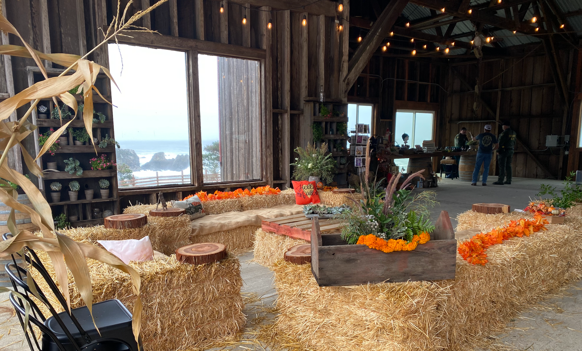 This unique property with its newly restored and historic barn with doors that open to a beautiful view is the perfect location for your special event. In addition, your guests can plan an extended stay to join the fun by circling the wagons (RV’s & Tents) on the bluff that overlooks the beautiful Northern California Coast.